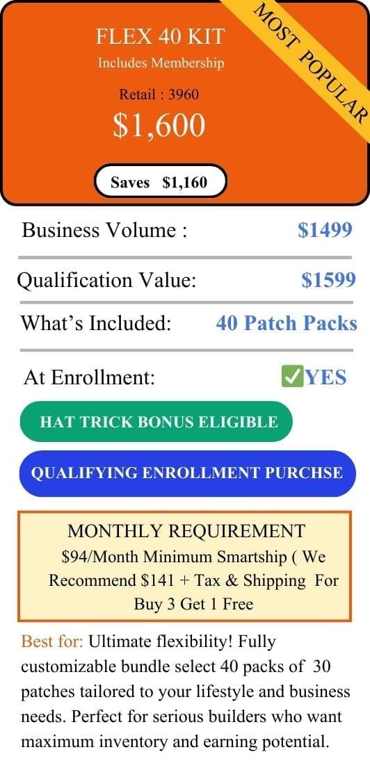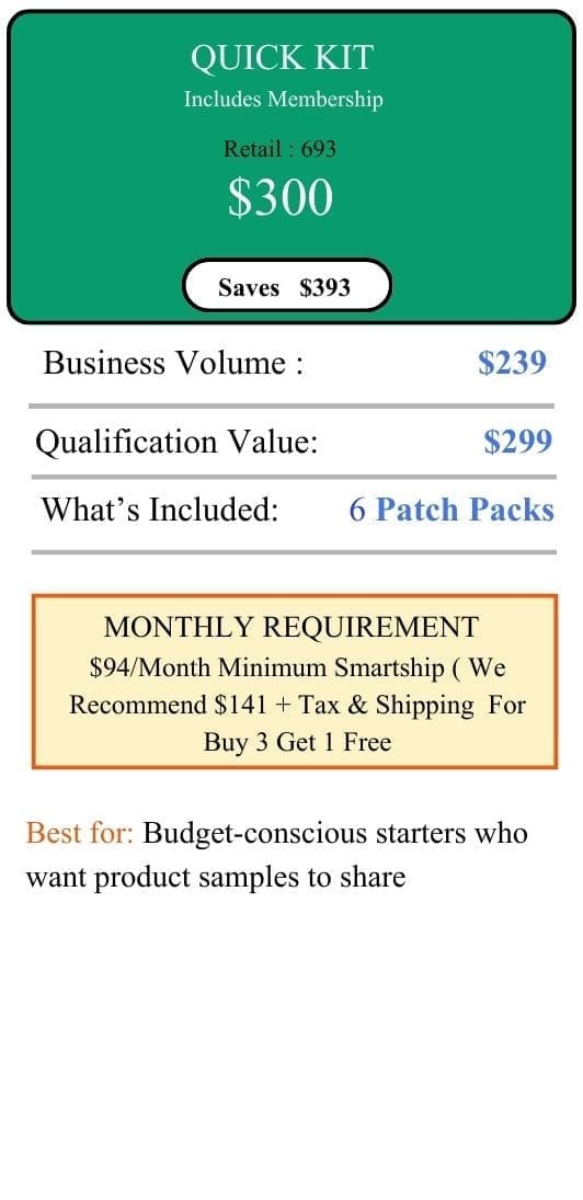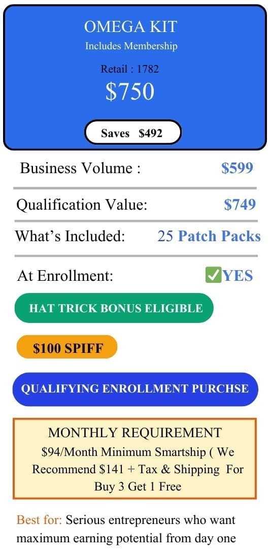 All Enrollment Packages Are Qualifying Purchases To Become A Super Patch Associate. However, To Maintain Active Status and Earn Commissions, You Must Meet The $94/Month Minimum Through Smartship Subscription